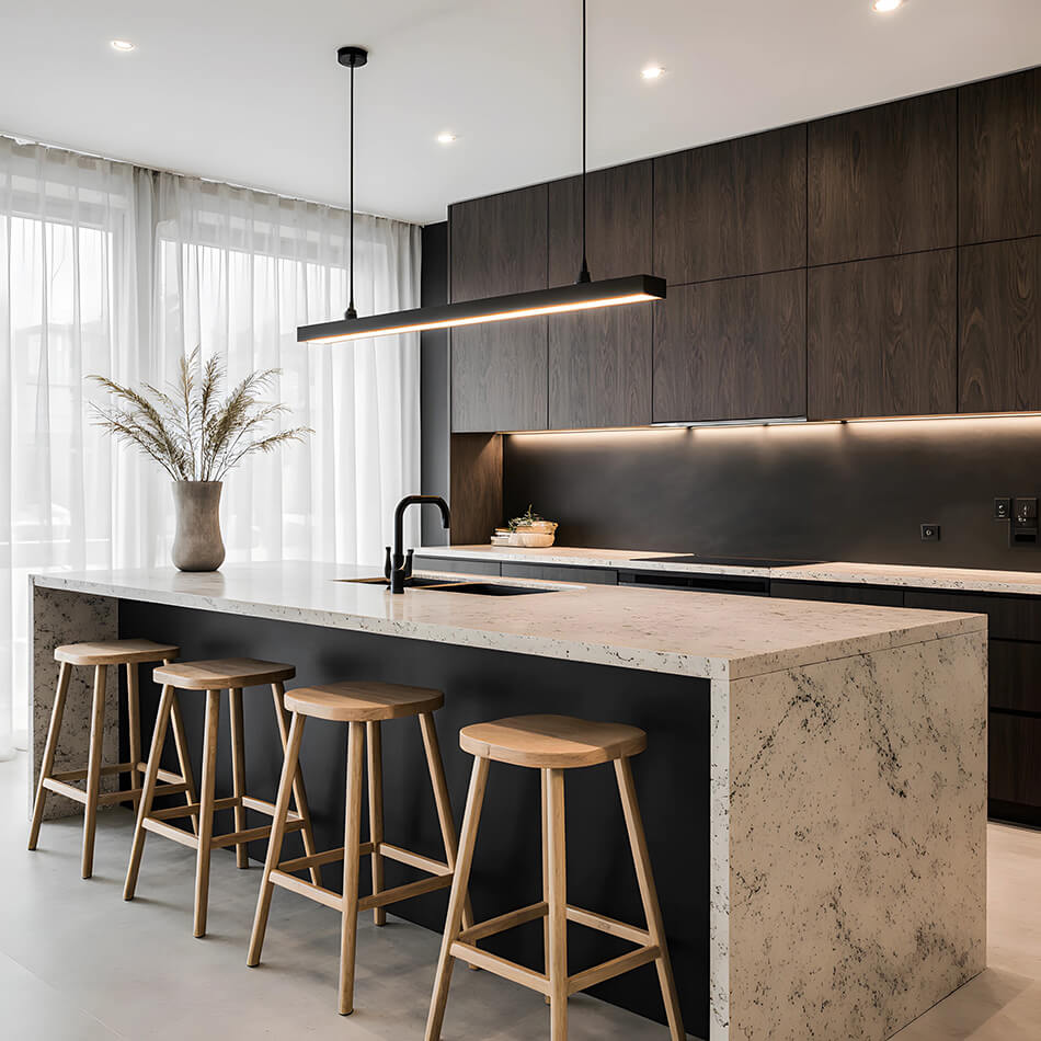 Để đảm bảo độ bền và tính thẩm mỹ lâu dài, bạn nên chọn những loại vật liệu dễ vệ sinh và chống bám bẩn. Một số lựa chọn phổ biến bao gồm inox 304, gỗ tự nhiên, gỗ công nghiệp hay kính cường lực, vừa mang lại vẻ đẹp hiện đại, sang trọng vừa dễ dàng lau chùi.