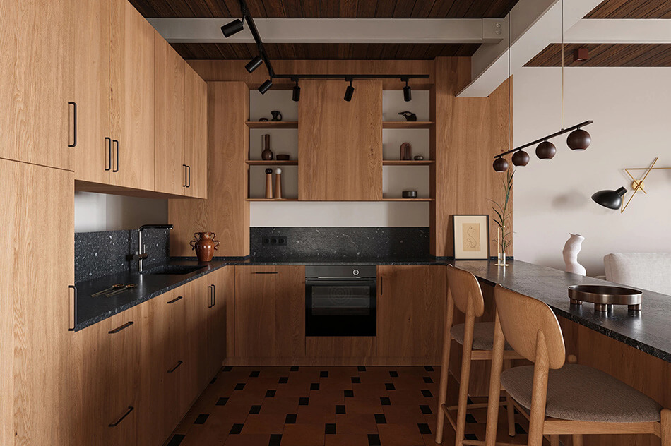 Việc bố trí các khu vực chức năng hợp lý sẽ tối ưu hóa hiệu quả sử dụng. Bạn nên áp dụng “quy tắc tam giác” giữa bếp nấu, bồn rửa và tủ lạnh. Cách sắp xếp này giúp việc di chuyển và thao tác nấu nướng trở nên thuận tiện, nhanh chóng, tránh được những bất tiện không đáng có.